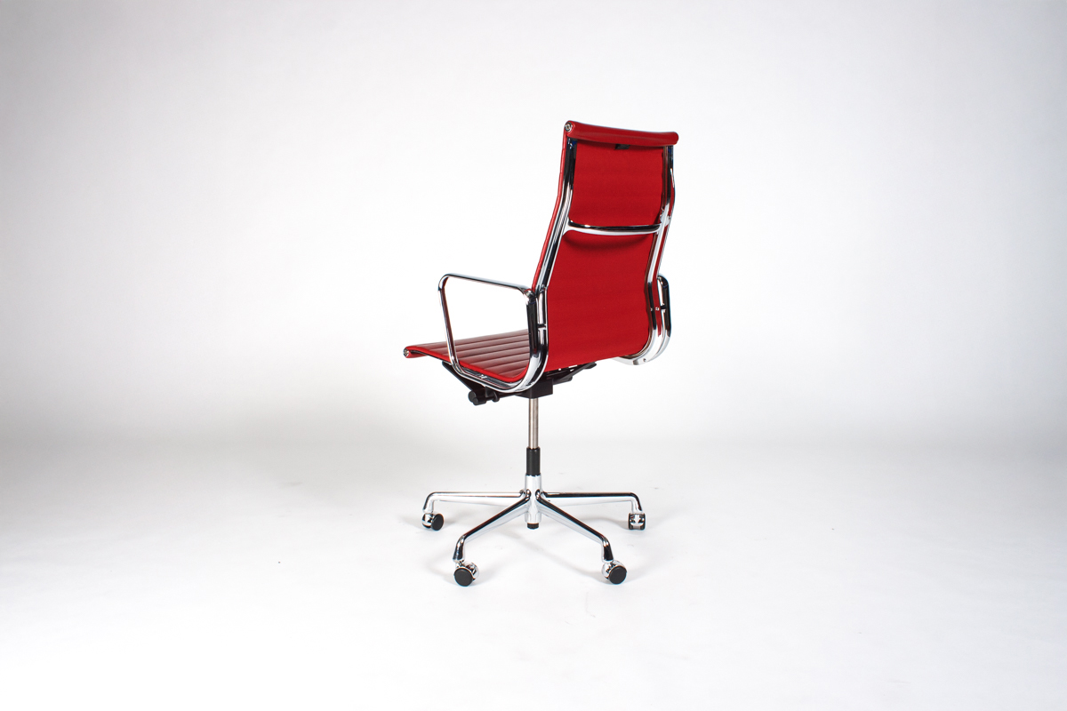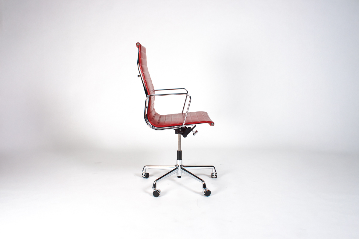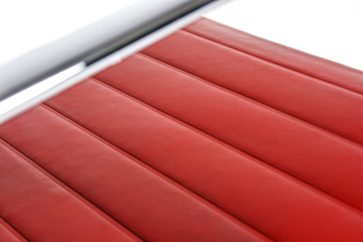 | Rood Leder, Verchroomd Aluminium |
