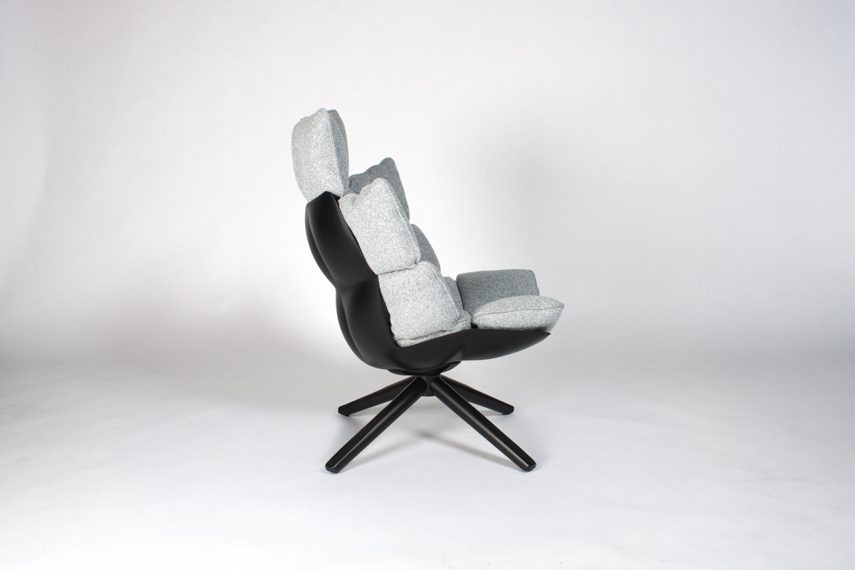 | Grijs Groene Stof, Zwart Geverfd Hard Polyurethaan | -Draaibaar -Snug Sides -Headrest |