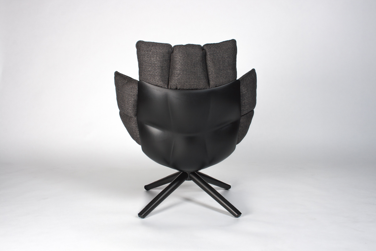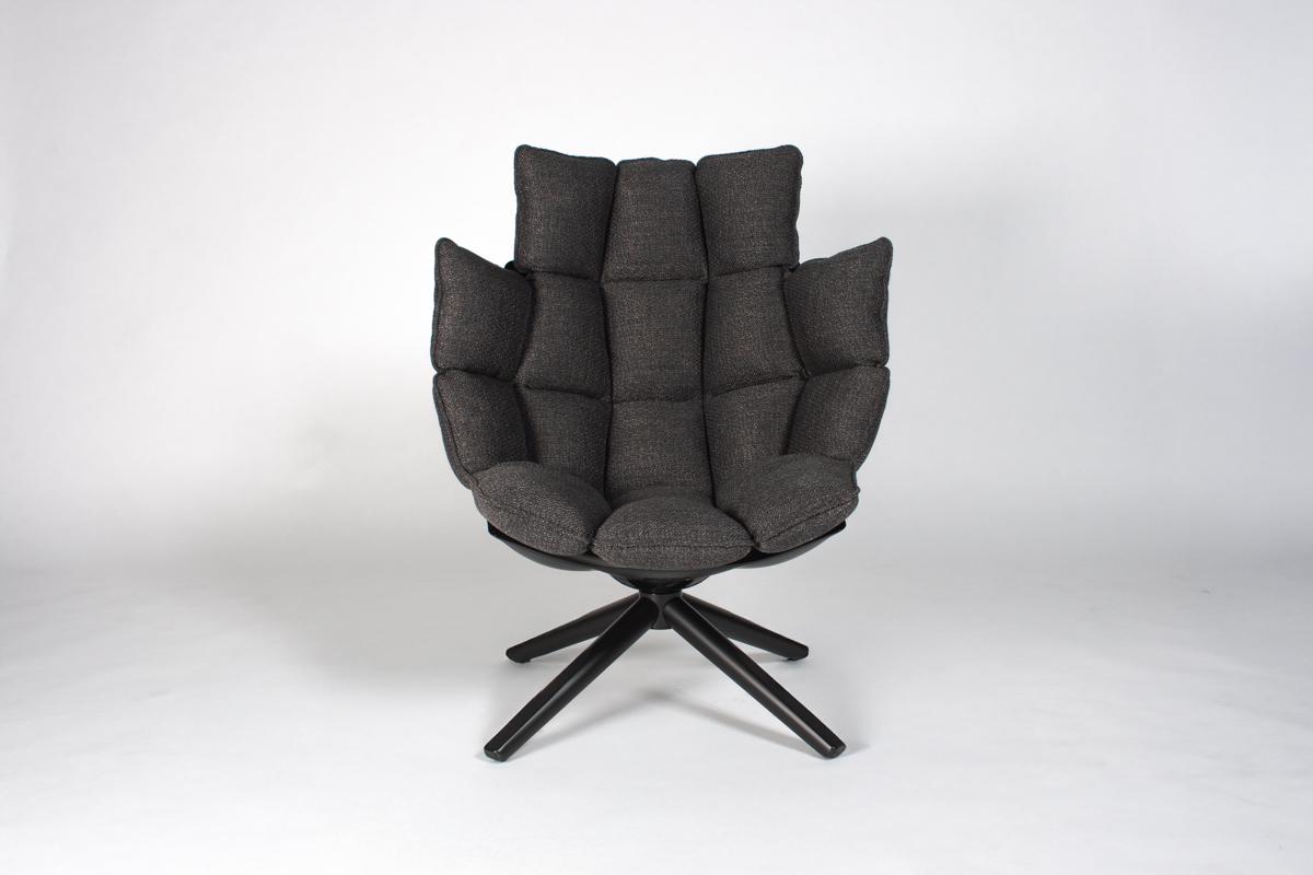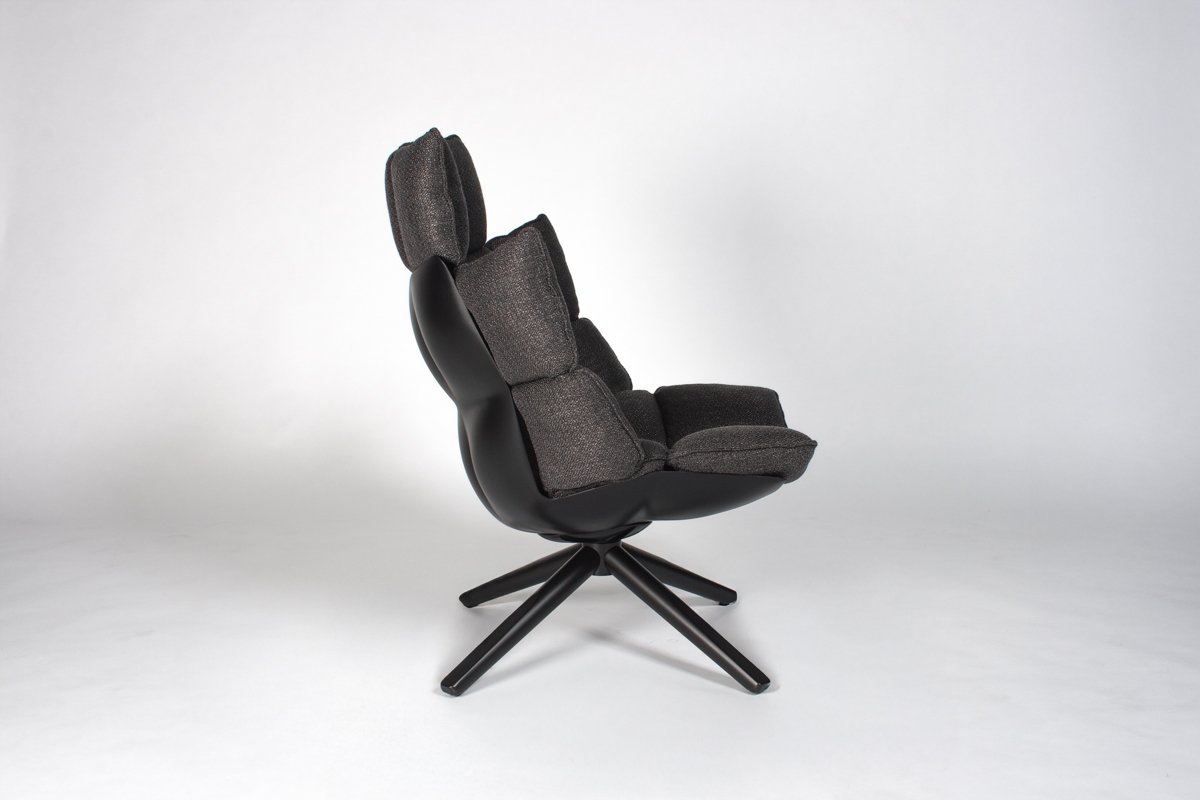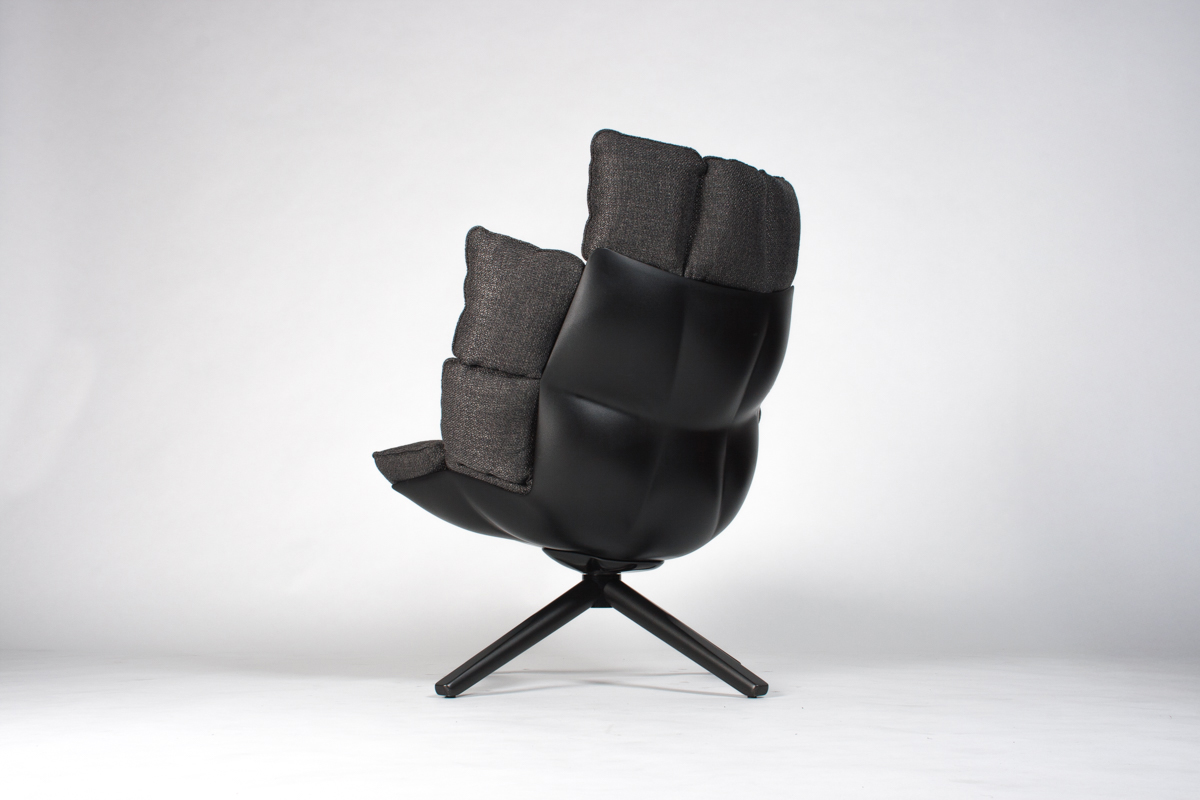 | Warm Dark Grey Fabric, Black Painted Hard Polyurethane |