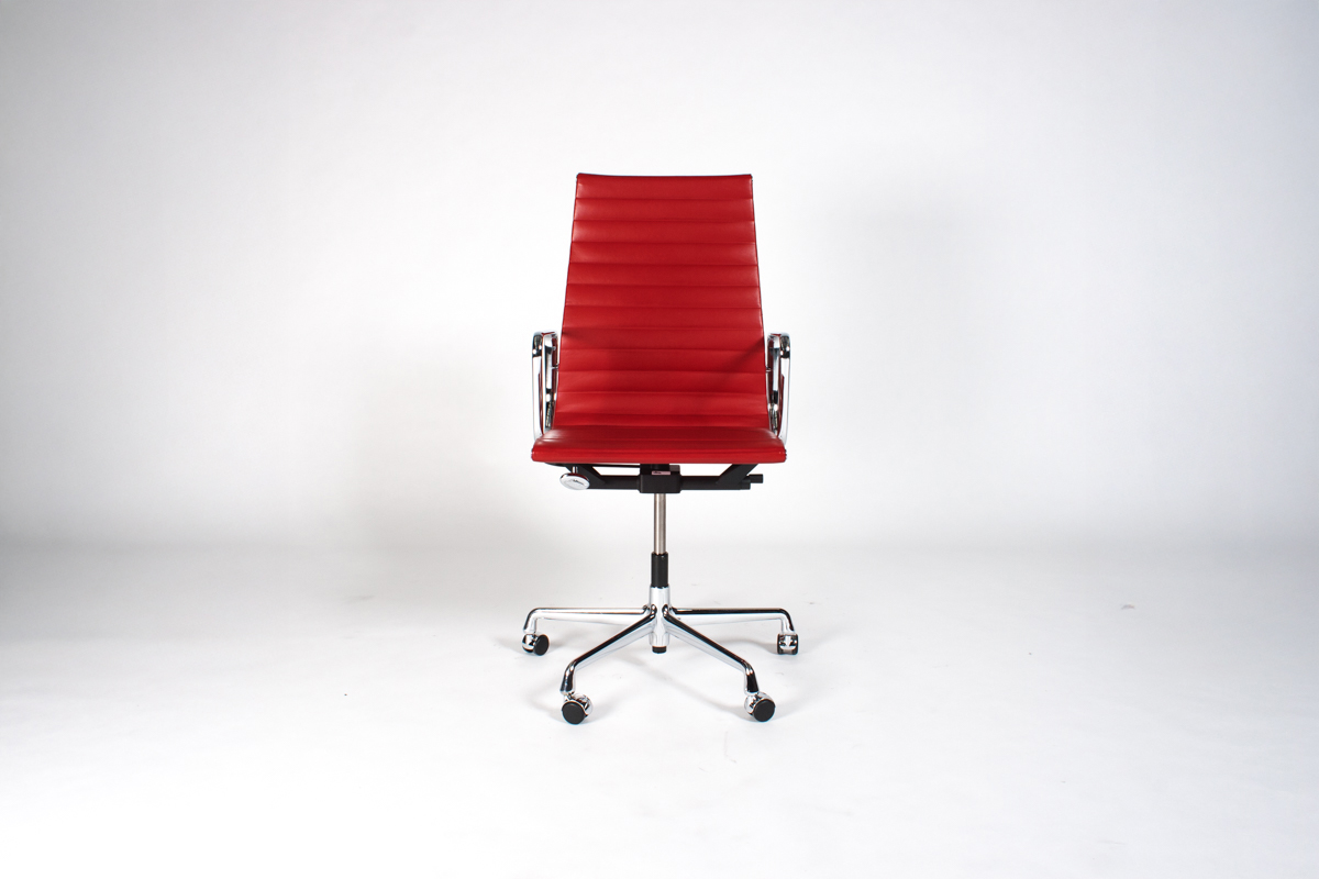 | Rood Leder, Verchroomd Aluminium |